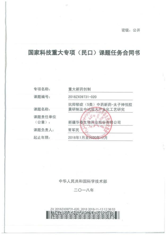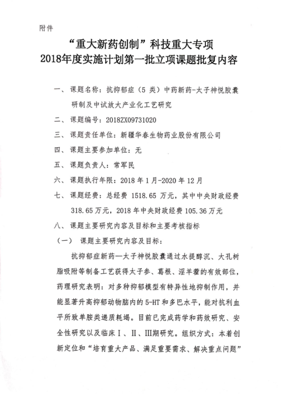 2018年11月22日獲得國家十三五重大新藥創(chuàng)制.國家科技重大專項(xiàng)