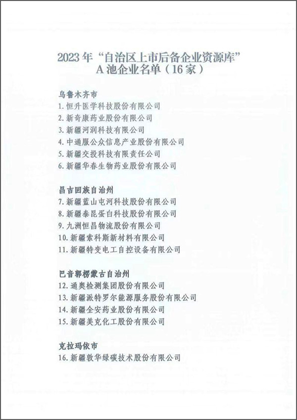 在華春集團(tuán)迎來(lái)28周年華誕節(jié)的喜慶時(shí)刻,華春生物藥業(yè)又迎來(lái)重大喜訊——在自治區(qū)地方金融監(jiān)督管理局于4月14日公布的2023年“自治區(qū)上市后備企業(yè)資源庫(kù)”名單中,新疆華春生物藥業(yè)股份有限公司連續(xù)名列資源庫(kù)A池企業(yè)名單。真是雙喜臨門,喜悅之情溢于言表!