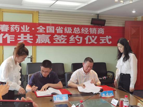 新疆華春投資集團(tuán)董事局主席兼總裁、華春藥業(yè)董事長(zhǎng)李成功 ,分別與河南億諾醫(yī)療服務(wù)有限公司總經(jīng)理劉磊(河南省代)、西藏林芝百盛藥業(yè)有限公司總經(jīng)理王彥喆(遼寧省代)、湖南藥眾聯(lián)信息技術(shù)有限公司銷售總監(jiān)鐘慶成(湖南省代)、山西仁達(dá)藥業(yè)有限公司董事長(zhǎng)徐金木(山西省代)簽訂了《“參葛補(bǔ)腎膠囊”推廣服務(wù)協(xié)議暨省級(jí)總經(jīng)銷協(xié)議》。華春藥業(yè)此次與全國(guó)4家省級(jí)總經(jīng)銷商簽署合作協(xié)議,標(biāo)志著華春藥業(yè)抗抑郁癥1.1類中藥創(chuàng)新藥“參葛補(bǔ)腎膠囊”在全國(guó)的營(yíng)銷布局進(jìn)入實(shí)質(zhì)性階段。